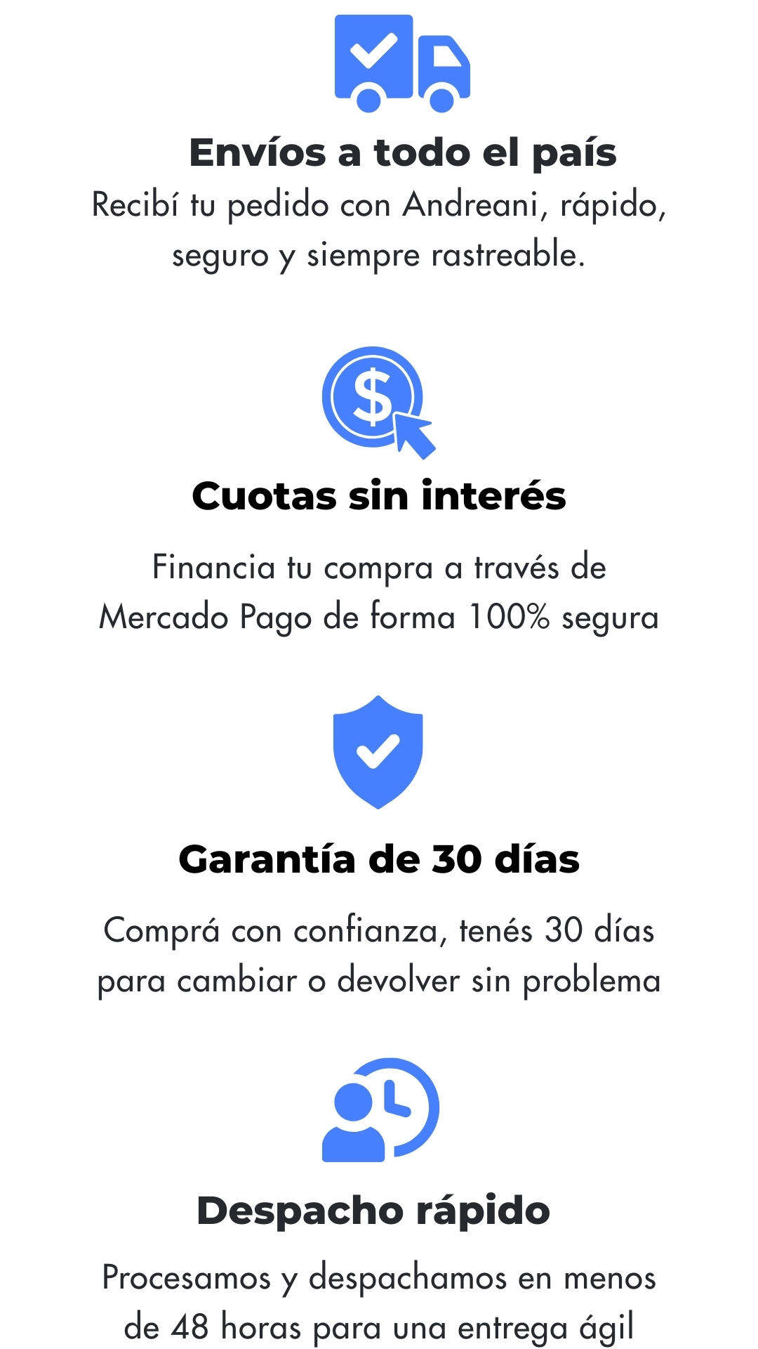 | 6 cuotas de $5.833,17 sin interés | CFT: 0,00% | TEA: 0,00% | Total $34.999,00 |